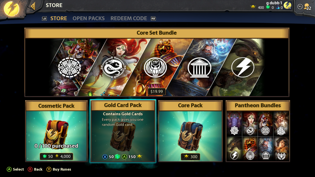 You can acquire new cards through purchasing “Core Packs” in Hand of the Gods. You will be given a set of random cards which can be applied to your custom decks. Of course, there is a variety of rarity to the cards in the packs which will make it difficult to gather all of the powerful cards. There are cards that can be applied to any deck while other cards can only be applied to the decks of certain Gods.