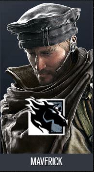 Maverick provides breaching opportunity for those that would like to be a little quieter in their approach. Defenders that lack awareness can be caught off guard by Maverick’s ability to puncture of a reinforced wall with his gadget, providing him with an opportunity to peer into rooms that are reinforced.