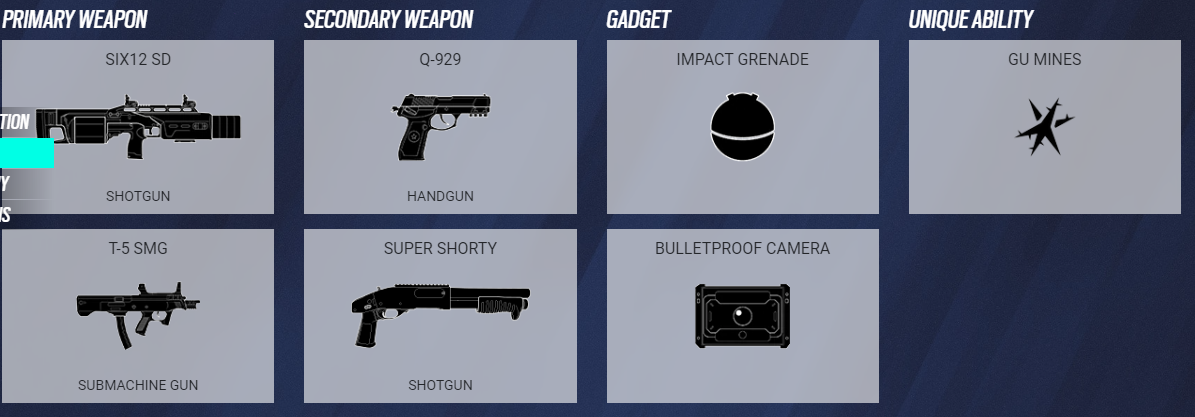 His T-5 SMG packs a punch with a quick fire rate. Ubisoft continues to change site options for weapons, and even with the recent removal of the 1.5 scope, Lesion has plenty of options for his weapon. The T-5 is manageable with some time in the firing range and the quick fire rate may gift you with a headshot.